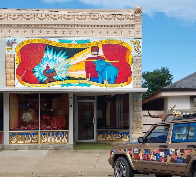 In Lucas, Kansas, you'll find a storefront art museum where you can take a tour of rural American art in one visit. It's called The World's Largest Collection of the World's Smallest Versions of the World's Largest Things. The artist and inspiration behind the museum is Erika Nelson, who was on a normal artist's career track when the 9/11 attacks forced a reckoning inside her, and inspired her to go see America. When seeing the many "world's largest" attractions, what we often call Roadside Americana, she made her own souvenirs in the form of tiny sculptures of the attractions. She ended up in Lucas, Kansas, a town with a population of 400 but a thriving culture of art.