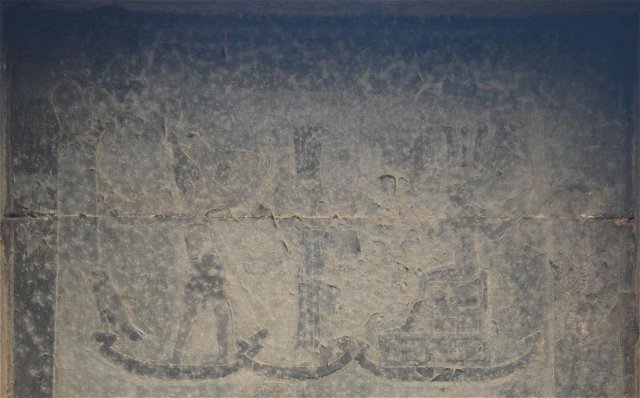 This is only one of seven astronomy- and calendar-themed sections of the ceiling, and it depicts the Egyptian new year. The three gods shown are Orion, representing the constellation, Sothis, the Egyptian name for the constellation Sirius, and Anukis, who is responsible for making the Nile floodwaters recede. The Egyptian new year was when Sirius becomes visible in the night sky and the Nile begins to flood. The other details and hieroglyphic labels also lend meaning to the painting.