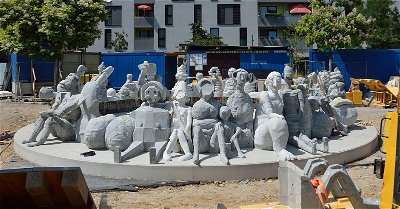 The public reacted negatively. Some have called it the ugliest fountain they've ever seen. Others objected to the ā¬1.8 million price tag. The most charitable word one could say about it would be "whimsical," except the lack of smiles on any of the figures make that difficult. But beauty is in the eye of the beholder. People who would give the art the benefit of a doubt still object to the fact that you can't see the water at all unless you stand way back from the fountain, and you cannot sit near it because of the sculptures. Read more about WirWasser, and see more pictures at Oddity Central. -via Fark ā