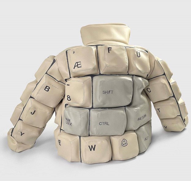 The streetwear fashion design house Liminal Workshop recently unveiled a new jacket design. It’s made of fake leather and embroidery, but you’d swear that it looks like a mechanical keyboard that is wrapped around a human body.