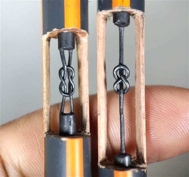 Color us impressed: Sri Lankan "micro" artist Loku Liyanage Dayananda of Daya Micro Art carved these knots out of pencil leads. You can see two types that Dayananda carved in the pic above: a single and a double knot.