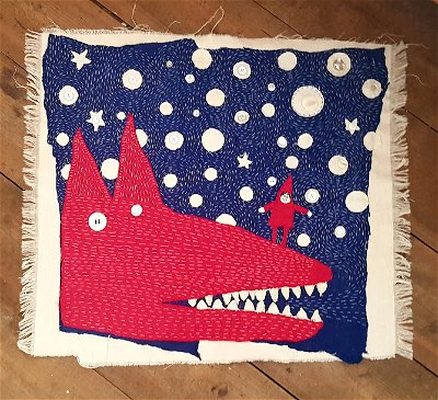 Illustrator and artist Hazel Terry maintains a charming single subject art blog called Little Red Riding Hood and Other Wolfish Things. Terry herself is drawn to the subject and has rendered the wolf and the little girl in different mediums, like the textile illustrations you see here. The site also features other artists and the many ways they evoke the same story, whether realistic or abstract, whether frightening or whimsical, whether modern or medieval, whether straightforward or thought-provoking. You can keep up with the blog here. -via Everlasting Blort ā