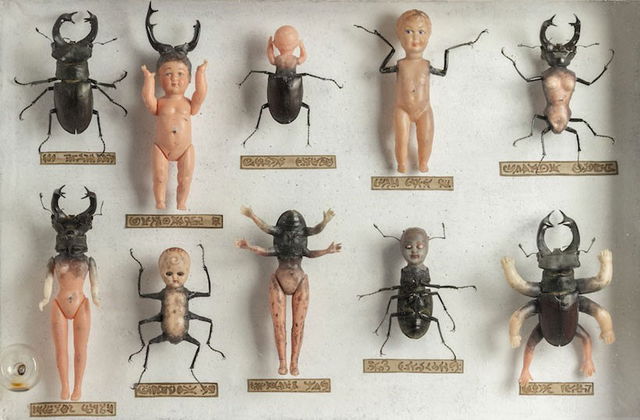 The most famous of Gauthier’s works appears to be this insect collection display that reveals human-insect hybrids seemingly created by a mad scientist using human dolls and beetle parts.