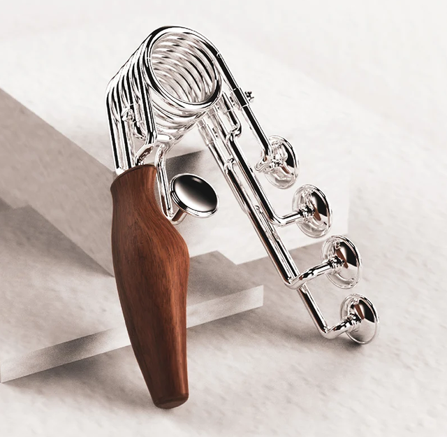 To symbolize their joint heritage but separate markets, the Gripper works like a grip exercise tool, but each of the joints are separate from each other and can be used in isolation. And, yes, it’s supposed to be reminiscent of one of Yamaha’s brass instruments.